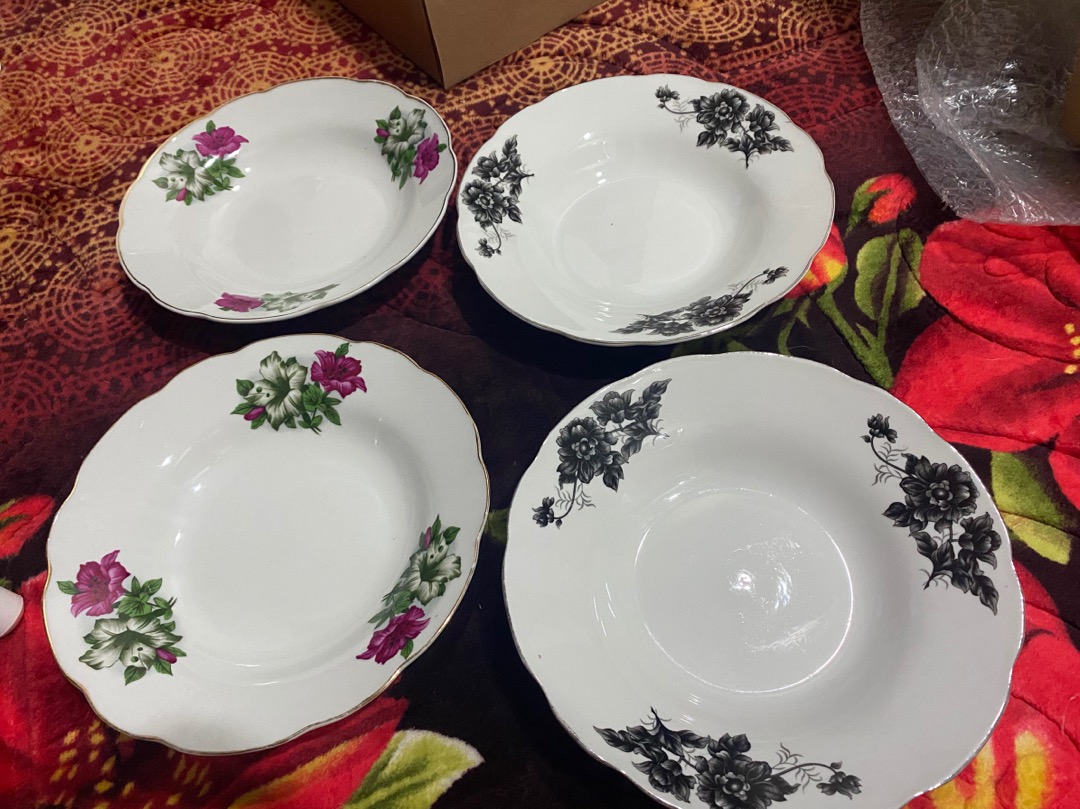 Percuma atau kerana grafik dan saiz berbeza. Set pinggan, piring dan set cawan corak bunga hitam yg dahpun. Pinggan mangkuk bunga kangkung ni kategori brg lama juga la. Bunga kangkung adalah di antara koleksi pml yang menjadi idaman hati dan pujaan ramai.